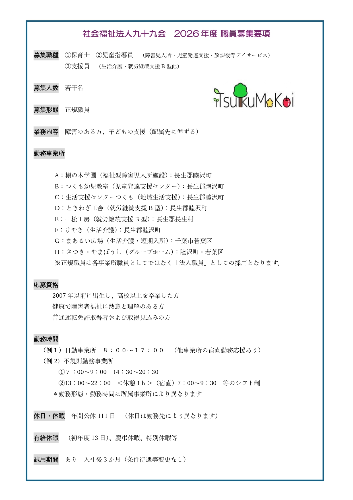 ★2026年度からの正規職員または契約職員を募集しています。各事業所の見学や体験等行っています。分からないことや詳しい内容、見学体験等については、お気軽にお問い合わせください。ご希望の日時を伺った上で、日程調整させていただきます。